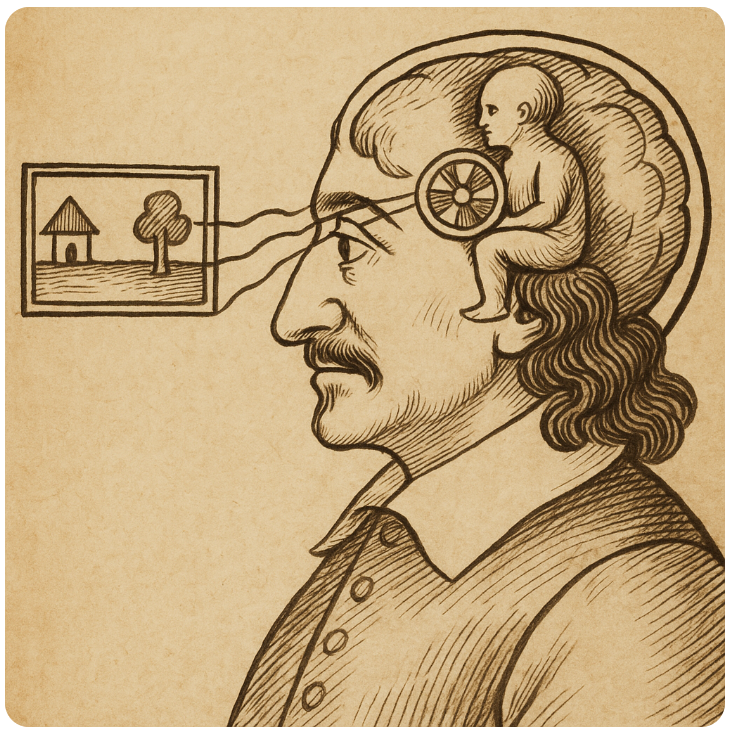 데카르트는 정신과 육체는 분리되어 있다고 생각했다. 즉 뇌 안에 정신이 있고 이 정신이 뇌로 들어오는 신호를 바탕으로 세상을 바라본다는 생각이다.