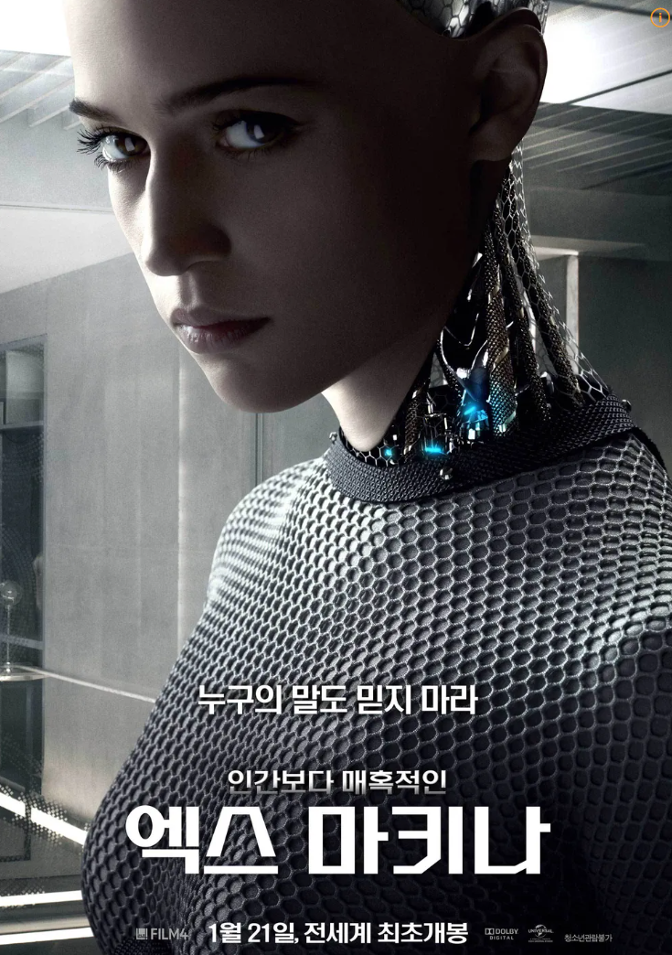 영화 엑스마키(Ex Machina)는 우리나라에서는 2015년 개봉한 작품이다. 이 영화에서는 알리시아 비칸데르가 열연한 가장 매혹적인 여성 인공지 로봇 ‘에이바’ 이 나온다. 이 영화는 앨런 큐링의 튜링 테스트를 가장 잘 표현한 작품이다.