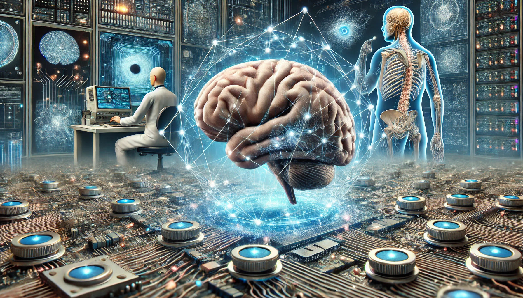 - 뇌-컴퓨터 인터페이스(Brain-Computer Interface, BCI): BCI는 인간의 뇌와 컴퓨터를 직접 연결하여 뇌 활동을 통해 기기를 제어할 수 있도록 하는 기술이다. 이는 신경과학과 AI의 결합으로, 마비 환자나 ALS 환자 등이 의사소통을 할 수 있도록 돕는 데 사용되고 있다. 최근 일런머스크의 뉴럴링크에서 뇌에 컴포터 칩을 연결하는 실험을 하고 있다.