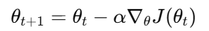 - ∇θJ(θt)는 손실 함수 J(θ)에 대한 파라미터 θ의 기울기(Gradient)이다.